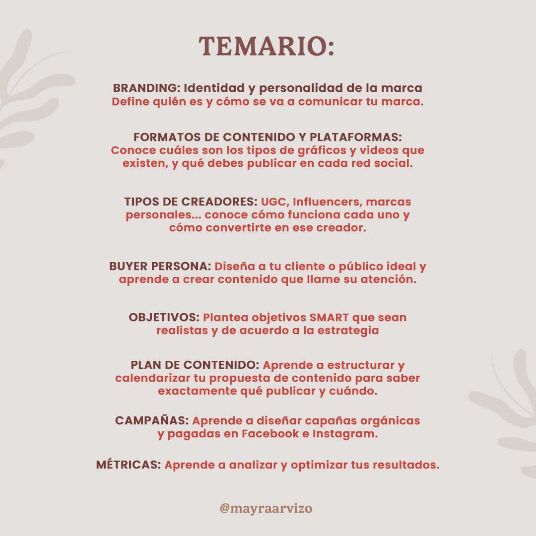 Y si deseas tomar una sola clase sobre un tema específico, aquí puedes encontrar las clases disponibles. ¿Tienes dudas antes de comprar? Escríbeme en mis redes sociales @mayraarvizo.co @mayraarvizo